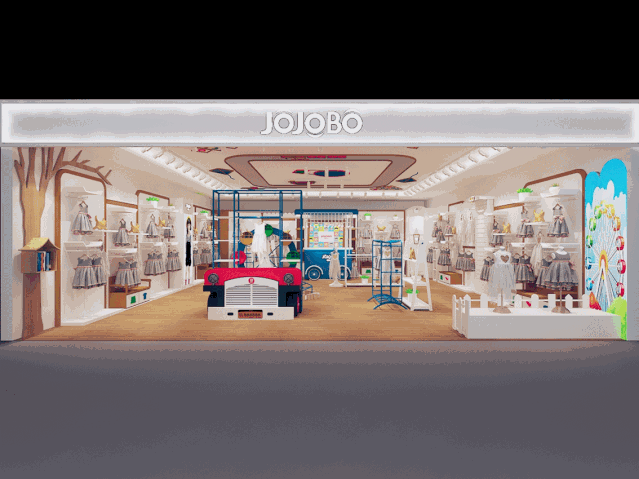 啾比乐品牌童装将零售空间设计中的童年乐趣元素与自然元素设计相融合,是对知识与自然的文化在当前时代背景下的演绎,是基于童年记忆,快乐成长,自然与童年充分理解基础上的当代设计。